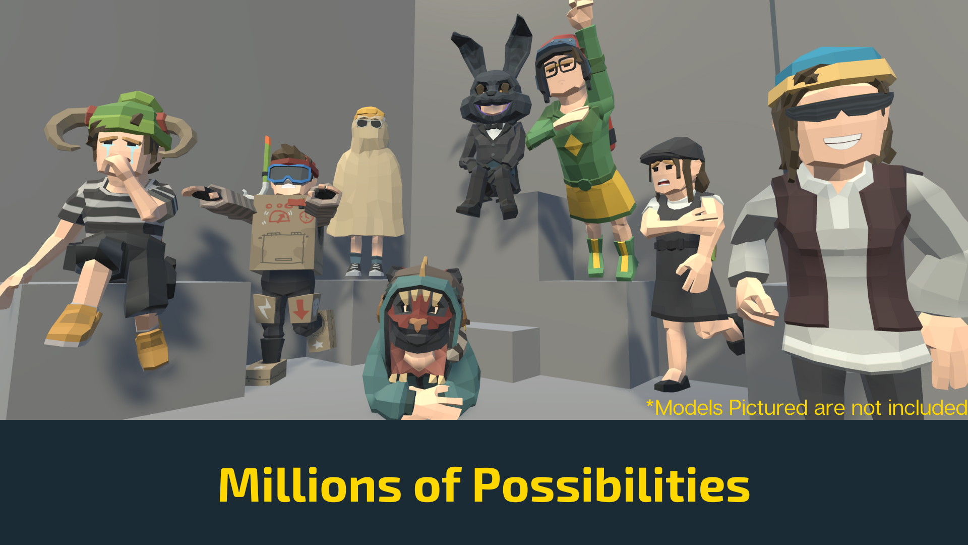 Kid Enhancement Toolkitextends the functionality of the popular "Polygon-Kids Pack" by adding an easy way to make use of the 100 of different kid models, emotions, hats, masks, and bags.